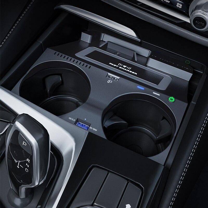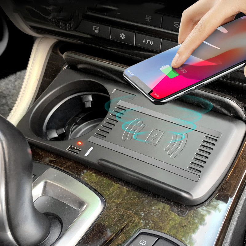 AA&CP offers in-car wireless phone charging on BMW 5 Series F10 F11 F18 2011-2017 and BMW 5 Series (for Left and right diving). Non-destructive installation, just plug-and-play.