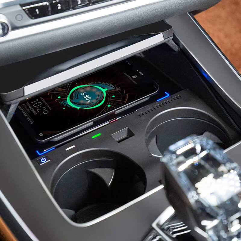 AA&CP offers in-car wireless phone charging on BMW X5 2019-2022, X5M/ X6 2020-2022, BMW X7 2019-2022. Non-destructive installation, just plug-and-play.
